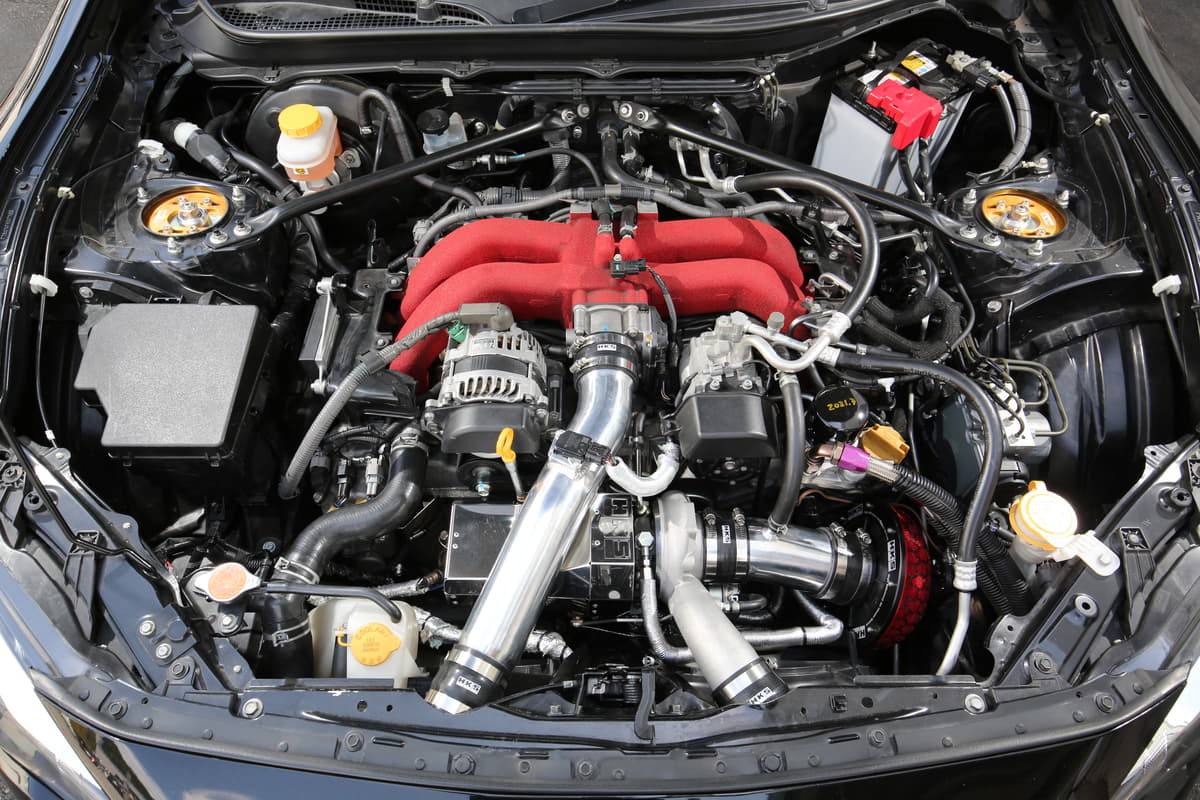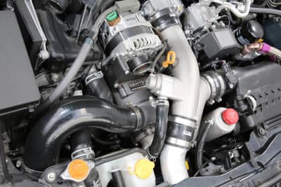 余談だが、86&BRZのパワー系チューンでは、ターボかスーパーチャージャーかで悩む方もいるだろう。違いはターボは排ガスによってタービンを回すのに対し、スーパーチャージャーはエンジンのクランクシャフトが生み出す力によって過給器を回転させるシステム。よって、排気側をチューニングする必要はなく、リーズナブルにパワーアップができるというメリットがある。しかし、エンジンの動力を使うため、エンジン本体に負担がかかりやすく、温度上昇がしやすくなるなどのデメリットもある。