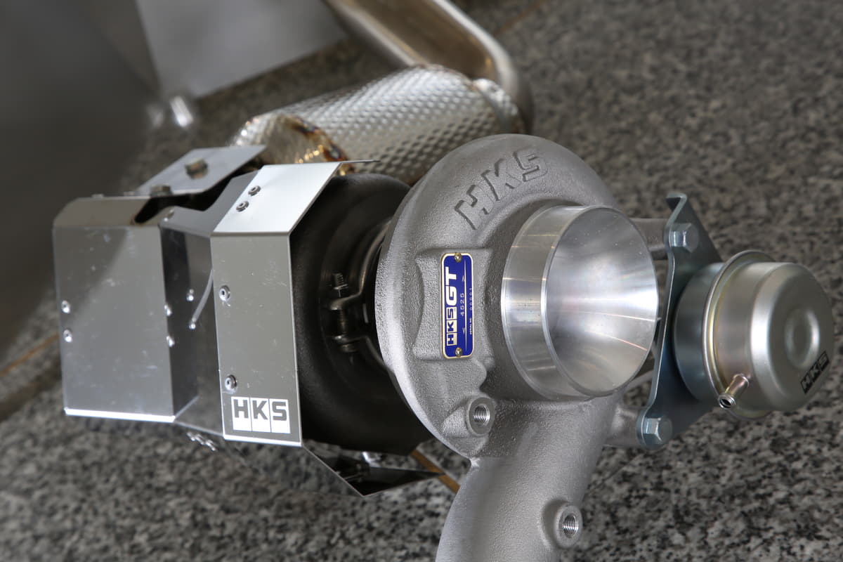 次期型が登場することが見えた段階にありながら、HKSは現行モデルに対して新しいボルトオンターボキットを間もなくリリースする。このアイテムはタービン本体、配管、インタークーラー、そしてエキマニ&キャタライザーをセット販売。それにフラッシュエディターなどの燃料調整システムを加えるだけで、気軽にターボが楽しめるように考えられている。正式な価格はまだだが約60万円(工賃別)で大変身が可能となるようだ。
