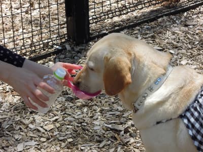 愛犬と車中泊するときに気をつけるべきこととは さらにエアコン+扇風機(サーキュレーター)で、獣医学の専門家によれば、車内の空気を動かすことも熱中症対策になるそうだ。アルミ製などのひんやりマットがあれば、なお涼しく快適に過ごせるだろう。クルマのそばで寛ぐ際は、日よけのタープがあれば暑さ対策になる。わが家の場合、夏のドライブ旅行では犬の首に巻き、中に保冷剤が入れられる、DOG DEPTのクールネックという、クール素材のアイテムを車内外で着用させるようにしている(保冷材を冷たいまま確保する必要がある)。愛犬と車中泊するときに気をつけるべきこととは 犬の熱中症対策の一環として水分補給も重要だ。いつでも水が飲めるように、移動中でも水がこぼれにくいウォーターボウルを用意しておくといい。愛犬と車中泊するときに気をつけるべきこととは フード用とは別にして犬の行動半径内に置き、まめに新鮮な水に取り替えてあげたい。愛犬と車中泊するときに気をつけるべきこととは