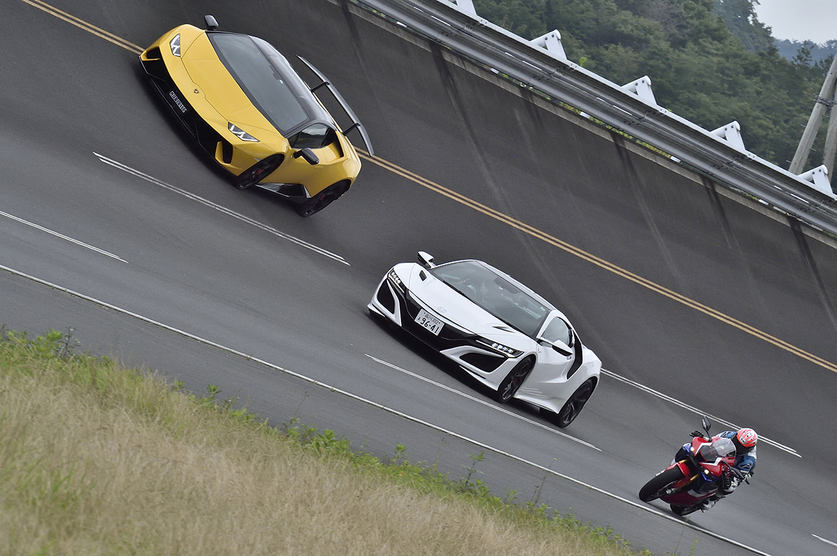 舞台は茨城県にある、日本自動車研究所・城里テストセンターの高速周回路。CBR1000RR-Rとの加速力対決や、ウラカンペルフォルマンテも交えたゼロヨン対決など、迫力ある走行シーンを動画でお届けしよう。その結果やいかに!