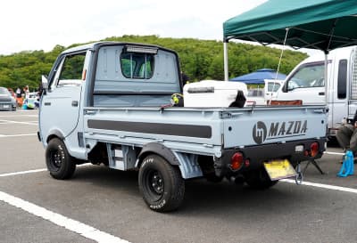 ピックアップしたのは現行前期型のハイゼットトランクジャンボ。専用の足まわりでリフトアップし、足元にクリムソンの「MGビースト」&TOYOのオープンカントリーR/Tの人気アイテムをインストール。