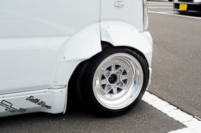 リフトアップのように大幅に上げるのではなく、車検が通る範囲の2、3インチアップが主流だ。これにオフ系のゴツゴツタイヤを取りつければ、存在感のあるタフなスタイルの出来上がり! 乗降性や走行安定性をほぼ損なうこともなく、タイヤ&ホイールとシャコアゲ用の足をセットするだけなので、カスタムの費用も最小限。それでいてしっかり目立つからコスパも抜群! 今の時代にマッチしたカスタムといえよう。