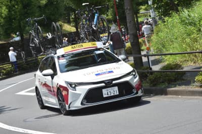 自転車ロードレースは筆者の住まいの近くを通り、遭遇したためその様子を見たのだが、注目したいのはカローラツーリングだ。というのも自転車ロードレースを併走したカローラツーリングは送迎車、大会運営車とは別のクルマとなる、昨年500台限定で設定された特別仕様車の2000Limitedだったようなのだ。