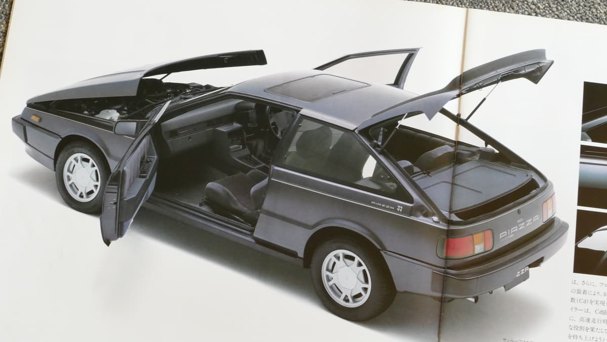 広報資料でもチラッと触れられているが、まず1979年のジュネーブショーにプロトタイプの“アッソ・ディ・フィオーリ(クラブのエース)”として登場。その後“いすゞX”として東京モーターショーに展示(展示車には“asso”のエンブレムがそのまま装着されていた)、1981年5月13日(発売は6月6日)、ピアッツァとして正式デビューを飾った。