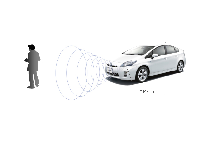 電気自動車(EV)はもとより、モーター走行するハイブリッド車(HV)を含め、発進から低速走行までの間は、クルマが走ることを知らせる擬音を使った音出しを車外へ行っている。これを、車両接近通報装置と呼ぶ。