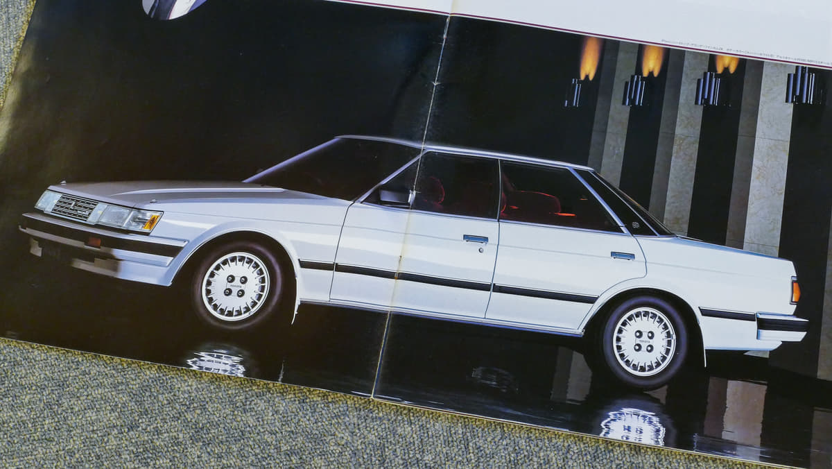 ちなみに1986年にはこのピラーをベージュの色さしにした限定車も発売されている。同様にメッキのグリルにビルトインした大型フォグランプ(当時このイエローバルブを不必要にオンにして走っているクルマが何と多かったことか!)も、クラウンのイメージに倣ったもの。“面一でスラントしたダイナミックなフロントまわり”と、資料には説明がある。