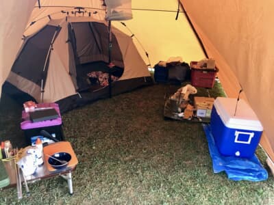 ベンチレーションのあるテントならベンチレーションを開け、ない場合は出入口のファスナーを少し開けて、外気を取り込めるようにしましょう。2カ所以上空けることで空気の流れができるので、効率よく換気することができます。