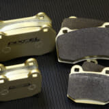 仮に新品でも純正パッドで走るのは自制し、サーキット用の強化品を使うようにしたい。選ぶとき注意したいのは耐フェード性で、純正パッドはフェード現象(ブレーキを連続で使用したことによる制動力の低下)が300~350度で始まるのに対し、スポーツパッドは400~750度と高い温度域に設定されている。つまり高速からのフルブレーキングや、周回を重ねたときもフェードしにくいというワケ。