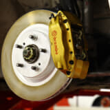 次はブレーキ。サーキット走行ではタイヤと並んで消耗が激しく、パッドとフルードの強化が必須とされている。軽量なクルマで経験も豊富なドライバーであれば、純正パッドで休み休み走れるかもしれないが、ビギナーにそんなスキルを求めるのは酷というもの。