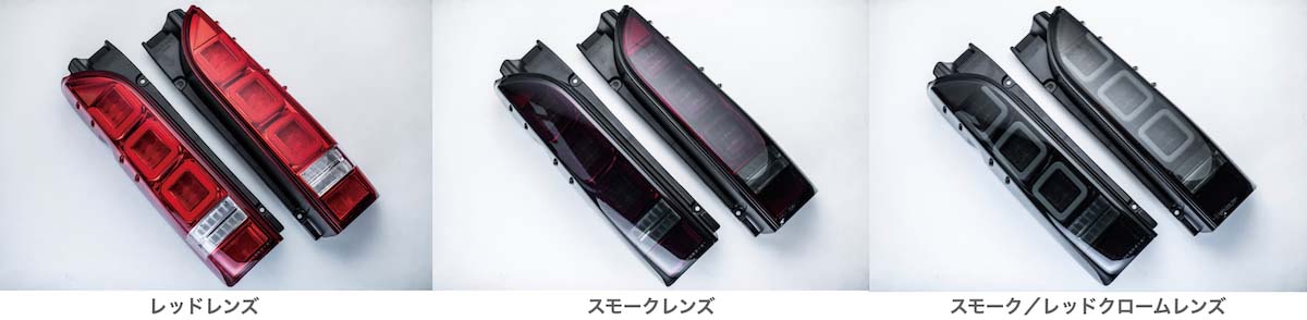 選べるレンズカラーは、レッドレンズ、スモークレンズ、スモーク/レッドクロームの3タイプを用意。なかでもスモークはとくにシブく、クルマのボディカラーを問わず、少しダークなイメージが悪っぽくキメてくれるほか、黒を差し色に使った塗り分けメイクにも効果を発揮してくれそうだ!