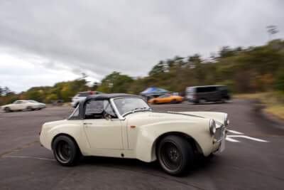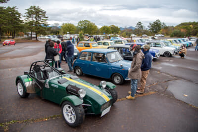 今年最後となる、10月17日の浅間サンデーミーティングのテーマは「英国車」。急に冷え込みが強くなってきたタイミングに、あいにくの雨天も重なって、イギリスが誇るライトウエイト・オープンスポーツカーの参加はわずかだった。だが、クラシック・ミニを中心として、1940年代のヒストリックカーからモダン・ロータス、ベントレーやジャガーといった高級車、さらには“最新の”BMWエンジン搭載モーガンまで、多士済々のにぎわいを見せた。