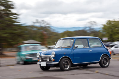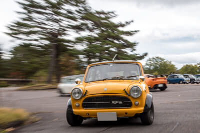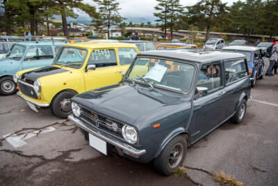 イギリス車といえば「ミニ」。この日の会場でも最大勢力で色とりどりのクラシック・ミニがズラリと並んでいた。そのなかで、ミニを代表するボディ色「アーモンドグリーン」をまとった雰囲気のいい個体のオーナーさんに話を聞いてみた。