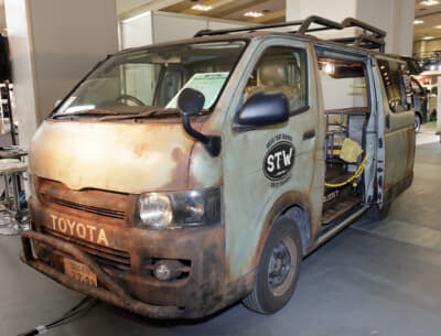 アウトドアで十分に使え、しかもスタイリッシュなこのデザインはノーマル車両とはひと味違ったカスタムハイエースの魅力がいっぱいに備わる。