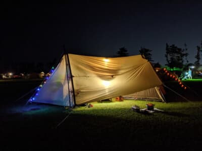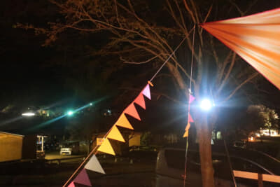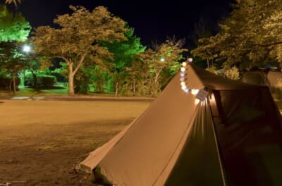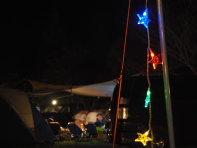 そこで、おすすめしたいのがLED式のストリングライトやイルミネーション用のライトである。張り綱にLEDなどのライトを添わせることでキャンプサイトを華やかなに飾ることができ、目印になることでロープやペグに足を引っかけて転倒する危険を回避してくれるのだ。最近では乾電池式のイルミネーションライトも市販されているので、電源の確保に苦労することもない。