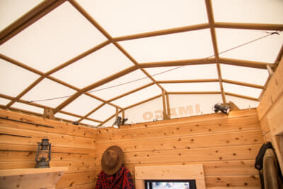 さらに小屋内の高さは2.4mもあって一般住宅並み。「幌屋根」からやわらかな光が小屋のなかを包みこむようになっているのも嬉しい。