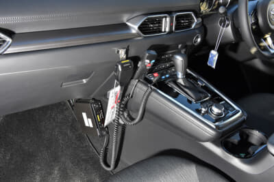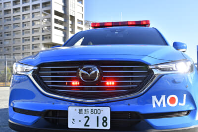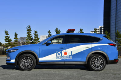 今回、その活動の指揮官車として納入されたのがマツダCX-8 XD Smart Edition (4WD 7人乗り)だ。外装はフロントグリルとリヤのナンバープレート横にLED赤色フラッシュ、ルーフには散光式警告灯(赤色)と無線機アンテナが取り付けられている。ボディカラーは法務省の専用色で塗られている。