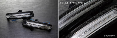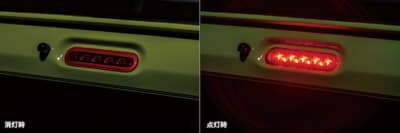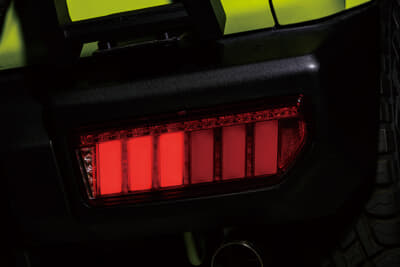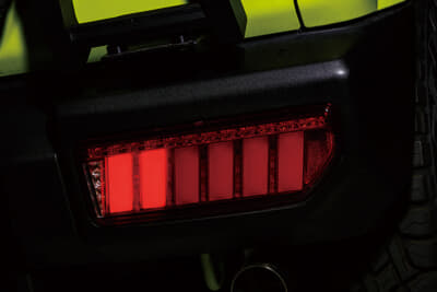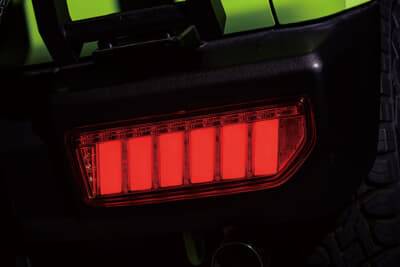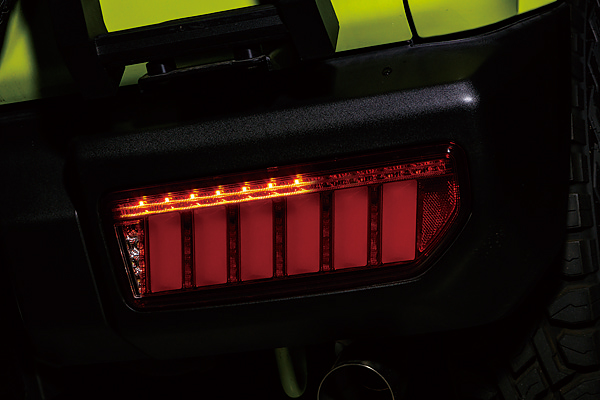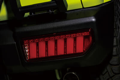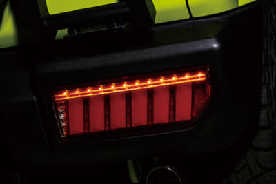 なかでも注目したいアイテムが、2022年1月に発売予定のジムニー&シエラ用LEDテールランプだ。ポジションとして片側6個の菱形LEDバーが点灯するスタイリングは迫力たっぷりで、ウインカーはシーケンシャル点灯のほか通常点滅も選べるなど、ビジュアル度はもちろん実用性もバツグンに秀逸だ。