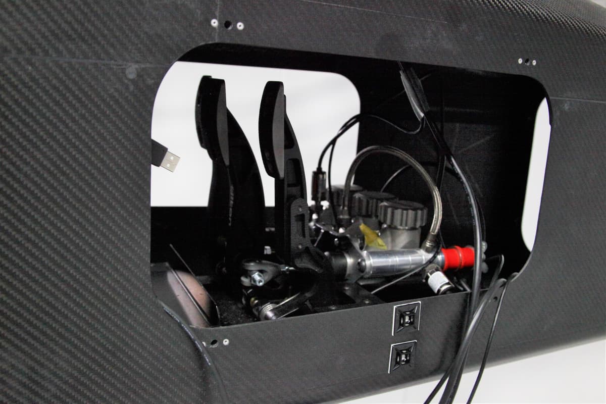ファーストコンタクトで「本物さながら!」と感じたのは、ペダル類のフィーリング。とくにブレーキはマスターバックなしの実車さながらの重さとなっていて、相当な踏力が必要です。
