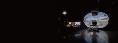 今回新たに作られたシミュレーターは、フライトシミュレーターなどで使われる半球体状のスクリーンに映像を映し出し、6軸のモーションシステムでローリングやピッチングを再現するというものです。