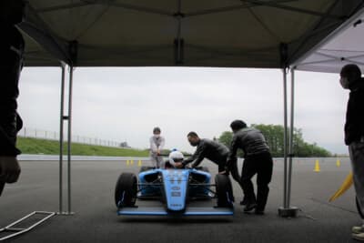 今回実際にシミュレーターを体験させて頂きました。設定されたコースは富士スピードウェイ、マシンはFIA-F4です。筆者は以前トムスさんのご厚意で、FIA-F4をドライブさせて頂いた経験があるのですが、今回はそのときの記憶と重ねながらドライブしてみました。