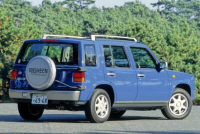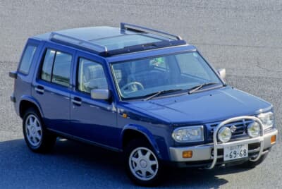 まずは何と言っても日産ラシーンである。1994年から2000年にかけて生産・販売された、Be-1から始まった日産パイクカーの流れをくむコンパクトクロスオーバーSUV。駆動方式は全車フルタイム4WDと気合が入っている。