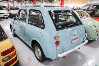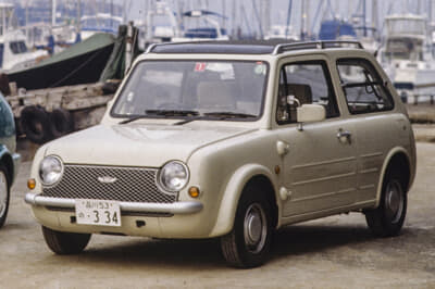 上下2分割のリヤクォーターウインドウ、外ヒンジドア、パイプ状バンパー、上下開きバックドアなどは、今見ても新鮮。エンジンは1L。5速MTまたは3速ATが組み合わされている。生産台数は日産パイクカーのなかでもっとも多い3万台超え。中古車も探しやすいはずだ。