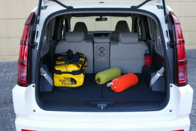 今見ると、なんだか宇宙のクルマのようにも見えて、映えること必至だろう。ただし、ラゲッジルームをしっかり使う場合は2名乗車になる。というか、定員4名だが、後席2座は簡易シートだから、人が乗るには適さない。つまり、カップル限定である。