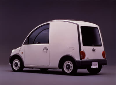 3台目も日産パイクカーシリーズ。それも、商用車ベースの日産エスカルゴである。1989年から1990年にかけて生産されたパルサーバンのプラットフォームをベースとしたパイクカーで、その名の通り、カタツムリのようなカタチが斬新な、粋な貨物車を思わせる2ドアハッチバックボディが特徴だ。