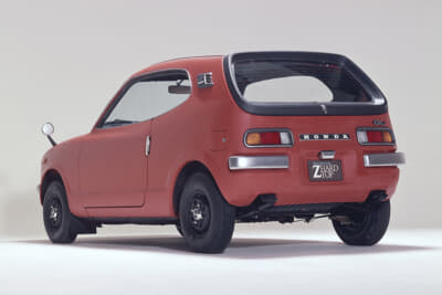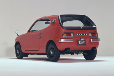 リヤエンドにはハッチゲートを設けていましたが、そのデザイン処理が特徴的。周囲を黒い樹脂フレームで囲ったハッチゲートは“水中眼鏡”に似ていると多くのファンの間で評判になり、それがそのままホンダZの愛称となりました。