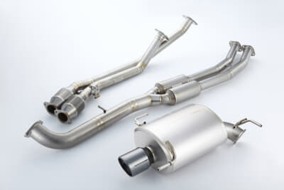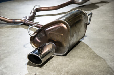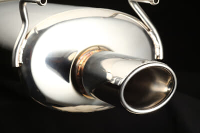 チューニングの第一歩と言えばマフラー交換。排気管の消音器の抵抗を少なくすれば、エンジン内から効率よく排気ガスが掃気され、その分エンジンにはフレッシュな空気が入り、酸素がたくさん吸気されるので、その分よく燃えてパワーアップする、というのが基本的な原理。