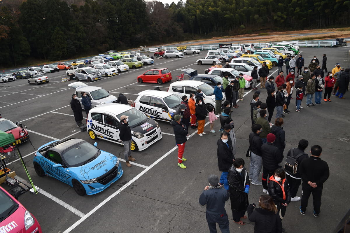 12月29日(水)、京都の軽スポーツカー専門店NAVIC(ナビック)主催の「ナビック年忘れマッタリ練習会2021」が三重県鈴鹿市にある、モーターランド鈴鹿で開催された。毎年恒例となっているこの軽自動車オンリーの走行会は、今回も計測器のマックスとなる60台の参加があった。