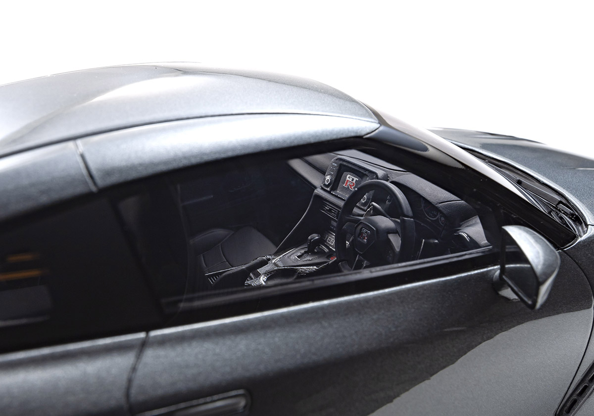 ドアが開閉できないからじっくりと眺めるのは難しいが、インテリアも実車さながらで、思わずドアを開けたくなってしまうほど。まるで子どものころに、憧れのスポーツカーを窓越しから眺めていたときのように、ウインドウ越しにそのディテールをチェックしてほしい。