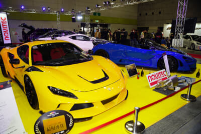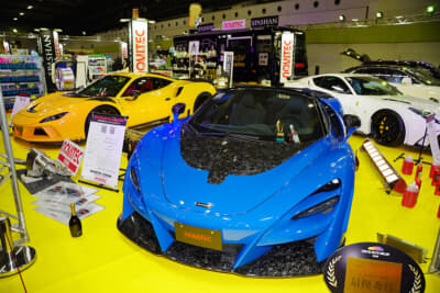 なお隣接する「ノビテック」のブースには、目にすることすら貴重な世界の高級車が大集合。それぞれの車両にはパワー&トルクや最高速といったスペックに加え、使用しているコーティング剤も明記されている。なかでも稀少なのは世界で15台しか製造されなかった、マクラーレン720S N-LARGO spiderだろう。ノビテックの手でチューニングされ806ps/878Nm、最高速は346km/hにも達するという。