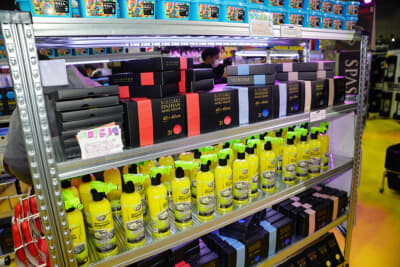 さらに高みを目指すならシリアルナンバー付きで数量限定、700本しか販売されない「スパシャンROSE2022」もあった。ほかには虫などの汚れに強く除去もカンタンなトラック用の「トラシャン」、ボディが水を拒絶するかのような強撥水性と高反射性が得られる「スローンアクリルコート」、ボディにそのままスプレーし手触りや光沢が向上する「スローンスプレー2」、イベント会場のように洗車が難しい環境でも使える「スーパードライ」など、人気の商品が勢揃いし開場した直後からギャラリーで大賑わいだ。