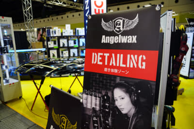 たくさんのギャラリーが集まる「磨き体験ゾーン」も。ヨーロッパを中心に高く評価される「エンジェルワックス」の優れた性能はモチロン、スパシャンが誇る電動ポリッシャーの使い勝手も味わえるコーナーだ。
