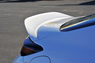 そこで自らエアロパーツを製作した。純正エアロの下部に追加するタイプのエアロで、フロントリップ、サイドステップ、リヤアンダー、カナードフィン、さらに前後の貼り付け式オーバーフェンダーだ。