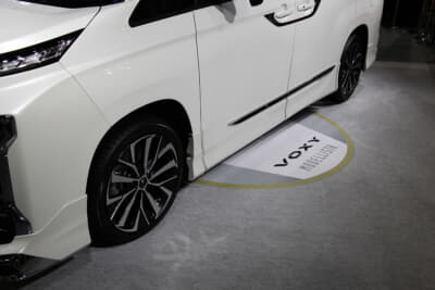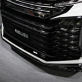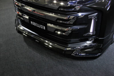 モデリスタ仕様のヴォクシーのデザインコンセプトは「Sharp×VALOUR」。こちらはさまざまな造形のメッキ加飾を施し、低重心で存在感のあるスタンスと上質感を与えています。ヴォクシーの展示車両もノアと同じく、全面的にエアロパーツを装着できるエアロパーツセットBと、メッキパーツで構成するクールシャインキットを装着し、LEDの電飾パーツもプラスされていました。