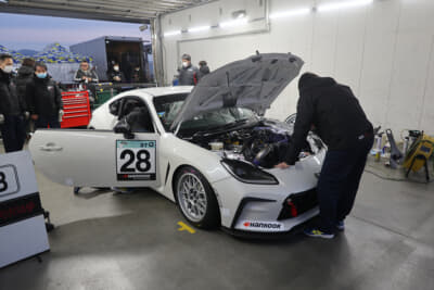 ターボ係数を掛けると約2.4Lとなり、BRZ CNF Conceptや、ST-4クラスのGR86/BRZと“同じ土俵”に立つことも可能になってきます。23日の公式テストは、ともに今回が実質的なシェイクダウン。ベストタイムこそGR86 CNF Conceptが1分53秒454まで詰め、対するBRZ CNF Conceptは1分56秒台に留まっていたため、2秒7ほどのアドバンテージを見せつけていました。