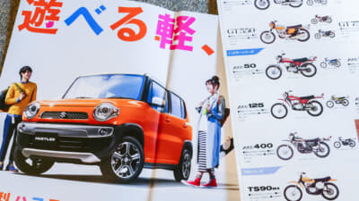 まずここ最近で1番「へぇー」と思わせられたのが、人気のスズキ・ハスラーだった。ご存知の方も多いと思うが、このネーミングはかつてスズキの2ストローク・単気筒のオフロードバイクに使われていたもの。2輪と4輪を手がけるスズキだからこその離れ業(?)で、調べるといろいろな意味があるのだが(ここではあえて触れない)、まあ、勢いのある語感は、今のハスラーにも合っている。