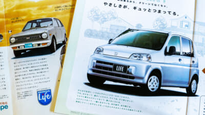 もう1台のバモスは、正式名をバモスホンダといい、見るからにユニークな“オープン型トラック”だった。その名を受け継ぎ1999年に登場したバモスは、それまでのアクティ・ストリートに変わるホンダの軽1BOXタイプ。2003年には、そのハイルーフ版のバモスホビオも登場している。ホンダの軽自動車ではほかにも、N360の後継車だったライフの車名が1997年に復活しているし、もともと“Nシリーズ”自体、最初のN360を記号として現代に蘇らせたものだ。