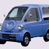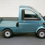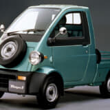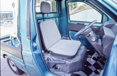 話題になったとはいえ、一見すると一発屋なのだが、ミゼットIIのすごいところは進化を続けたということ。1997年にはそれまでのトラックタイプ(ピックに名称を変更)に加えて、箱型の荷室を載せたカーゴを追加。3速ATを追加しつつ、シフトをコラム化することでスペースを確保して、ふたり乗りも登場した。ちなみにこのときに一部グレードに触媒が装着されるようになった。