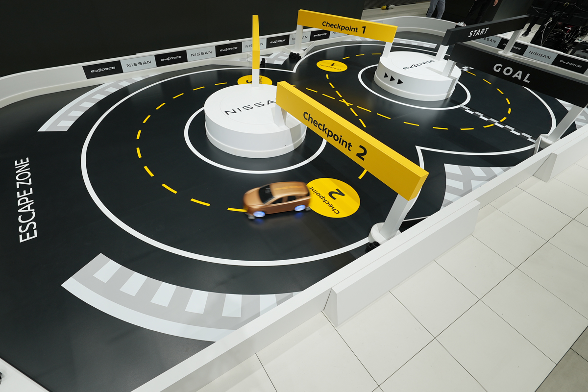 「e-4ORCE」は、前後に合計2基の電気モーターを搭載し、それぞれのトルクとブレーキを協調制御することで、どんな路面状況でも、ドライバーが安心して思い通りにコーナリングを楽しめる日産独自の4輪制御技術だ。今回、「e-4ORCE」の特長のひとつである、高い走行性能をアピールするべくラジコンカーを制作したという。