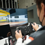 またラジコンカーは、実際にクルマを運転するときと同じようにシートに座り、ハンドルとペダルで操作する仕組み。ラジコンカーに搭載されたカメラの映像をモニターで見ながら操作するため、まるで実車を運転しているかのような感覚で「e-4ORCE」の制御を体感できるというわけだ。