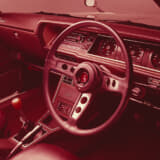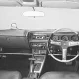フロントまわりやサイドを見ると、フロントは当時定番のアイアンバンパーにナンバープレートに置いた定番スタイルながら、少しだけ前側に曲線を見せるボンネットが新時代を感じさせる。サイドはヘッドライトからリヤフェンダーに下がるキャラクターラインと、ドアハンドルから後部にかけてCピラーを受け取るように上がっていくラインも印象的。まるで車体後部全体でオーバーフェンダーと見せるようなスタイリングは、サーフライン(サーフィンライン)で名を遺したスカイラインに負けない力強さがあった。