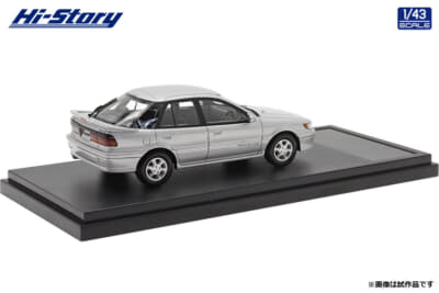 「ハイストーリー」シリーズでは、実車の細部まで再現。セダンでありながらアクティブなフォルムは、1/43スケールになっても健在。フロントの大型エアロバンパーの上にあるフロントグリルには4WDのエンブレムが奢られ、ドアには鍵穴まである。ボディサイドには「DOHC 16V INTERCOOLER TURBO」のステッカーも貼られている。