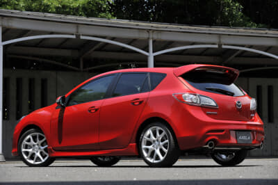 このクルマをサーキットで走らせた方で、当時はまだ標準装備した車種が少なかった、横滑り防止装置のDSCにお世話になった方が多い違いない。もちろん普通に走らせれば、それだけで元気が出るようなホットハッチである。インタークーラー用のボンネット上のエアインテークや、18インチのためのワイドボディがマツダスピードらしさを演出するが、さらに、当時人気だった大口径マフラー装着した個体もよく見かけたものだ。