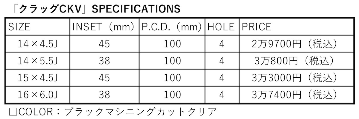 土の薫りが漂う本格オフ系ブランドのクラッグが、新たにシーンへ投入した最新モデルがこのCKV。クロスカントリーレーシングギアという基本的なブランドコンセプトはそのままに、パワフルだけど気取らずカジュアルに、活動的なシーンで履いて楽しめるホイールというのがその根本だ。ふだんは街乗りがメインだけど、週末にはドライブやアウトドアを楽しみたいというコンパクト&軽カーに向けたモデルと言える。
