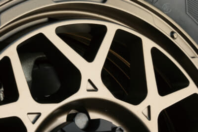 メッシュ感がギュッと凝縮されたおかげで、特有の華奢さも薄れ、カタマリ感が増してよりパワフルな印象になったのもポイント。それでいてエッジ感は強く、ヒネリ形状ならではの躍動感もしっかり。リムには歯車を連想させるようなビードロック風デザインも採用されており、ヨンクらしいワイルドな表情を見せてくれるのも魅力的だ。