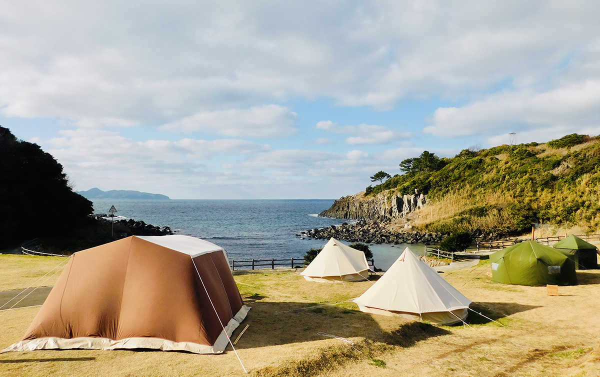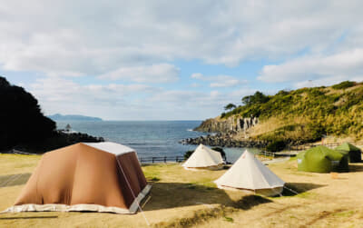 五月晴れの空と青い海……絵にかいたようなロケーションが味わえる海のキャンプ場ですが、この季節は想像以上に水温が低いので注意が必要です。海開きの後であれば監視委員を配置する海水浴場も多いのですが、監視員が置かれていない今の時期に海に入ろうと考えてはいけません。
