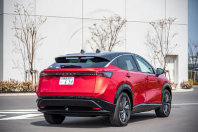 ちなみに、発売となったのはアリアのベーシックモデルと位置づけられ「B6」というグレード名を冠する、66kWhのバッテリー容量を持ち最高出力160kWのモーターで前輪を駆動する2WDの仕様から。新開発の「e-4ORCE」を採用したB6の4WD仕様(250kW)や、さらにバッテリー容量が大きい91kWhの「B9」の2WD(178kW)および4WD(290kW)は遅れての発売となる。